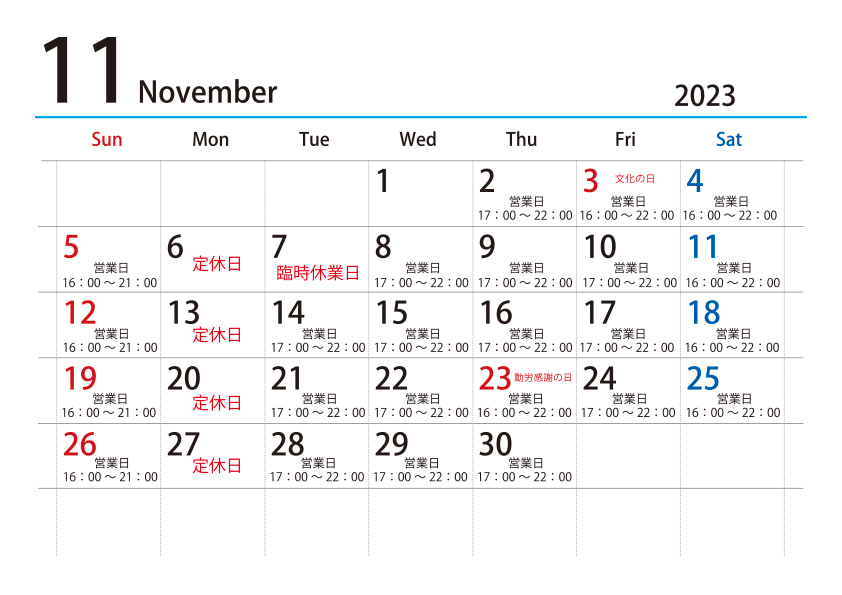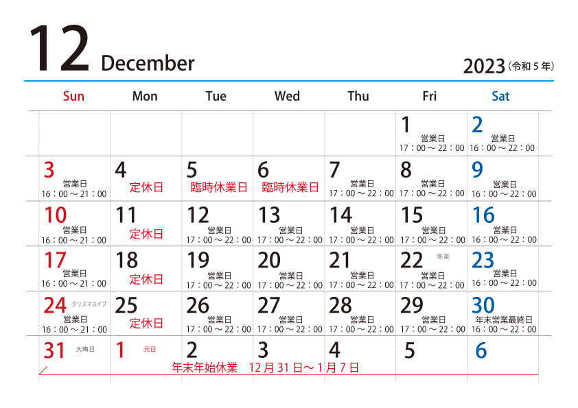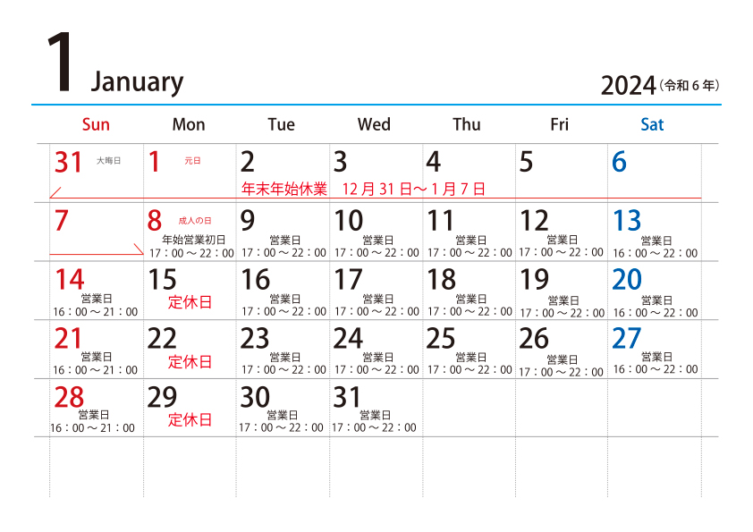 (季節によりかわります。詳しくは営業日カレンダーを確認ください)